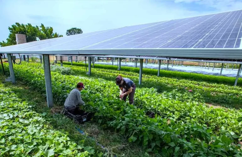 A dual-use model that combines solar panels with agricultural cultivation, enabling optimized land utilization.